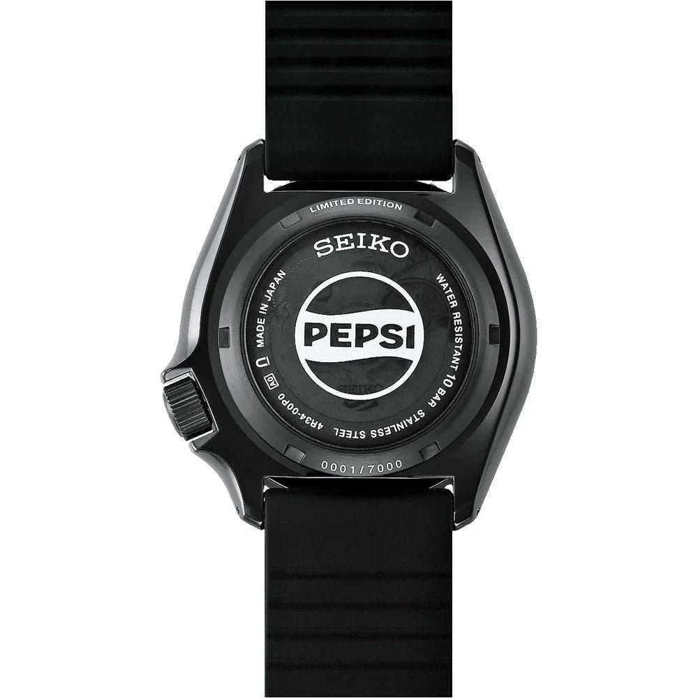 Seiko 5 Sports x Pepsi Limited Edition Collaboration In All Black Watch SSK047K1. This limited edition watch is an exclusive collaboration between Seiko 5 Sports and the globally popular beverage brand, PEPSI.